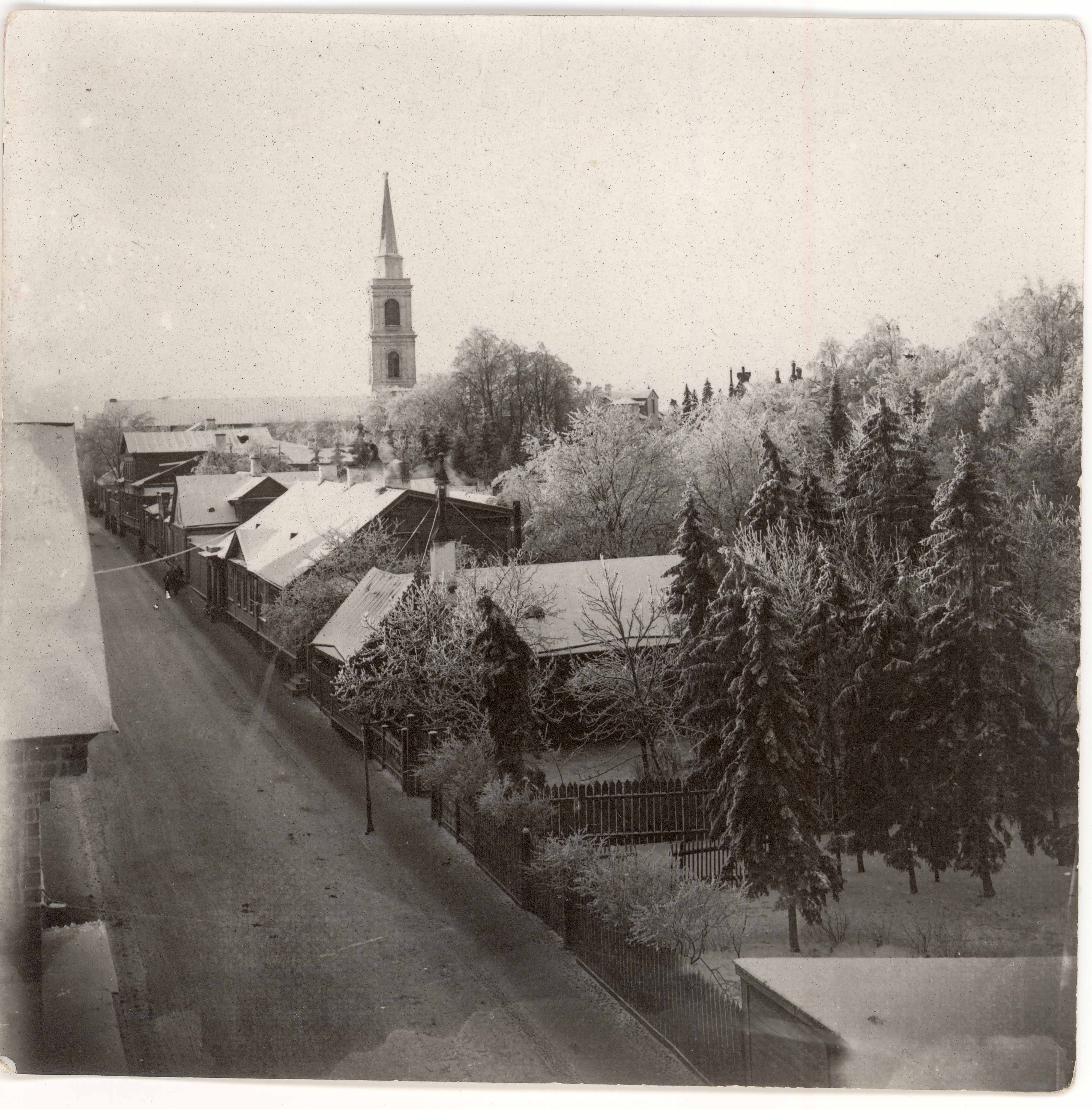 Tartu. Tiigi tn vaade Maarja kirikuga (torn hävinud).