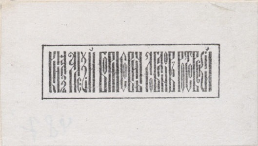 Nelinurkses raamistuses ornamenteeritud tähtedega: Князъ Алексей Борисович Лобанов-Ростовский;"Экслибрисы и штемпели частных коллекций в фондах Исторической библиотеки. Государственная публичная историческая библиотека России. Составитель В. В. Кожухова