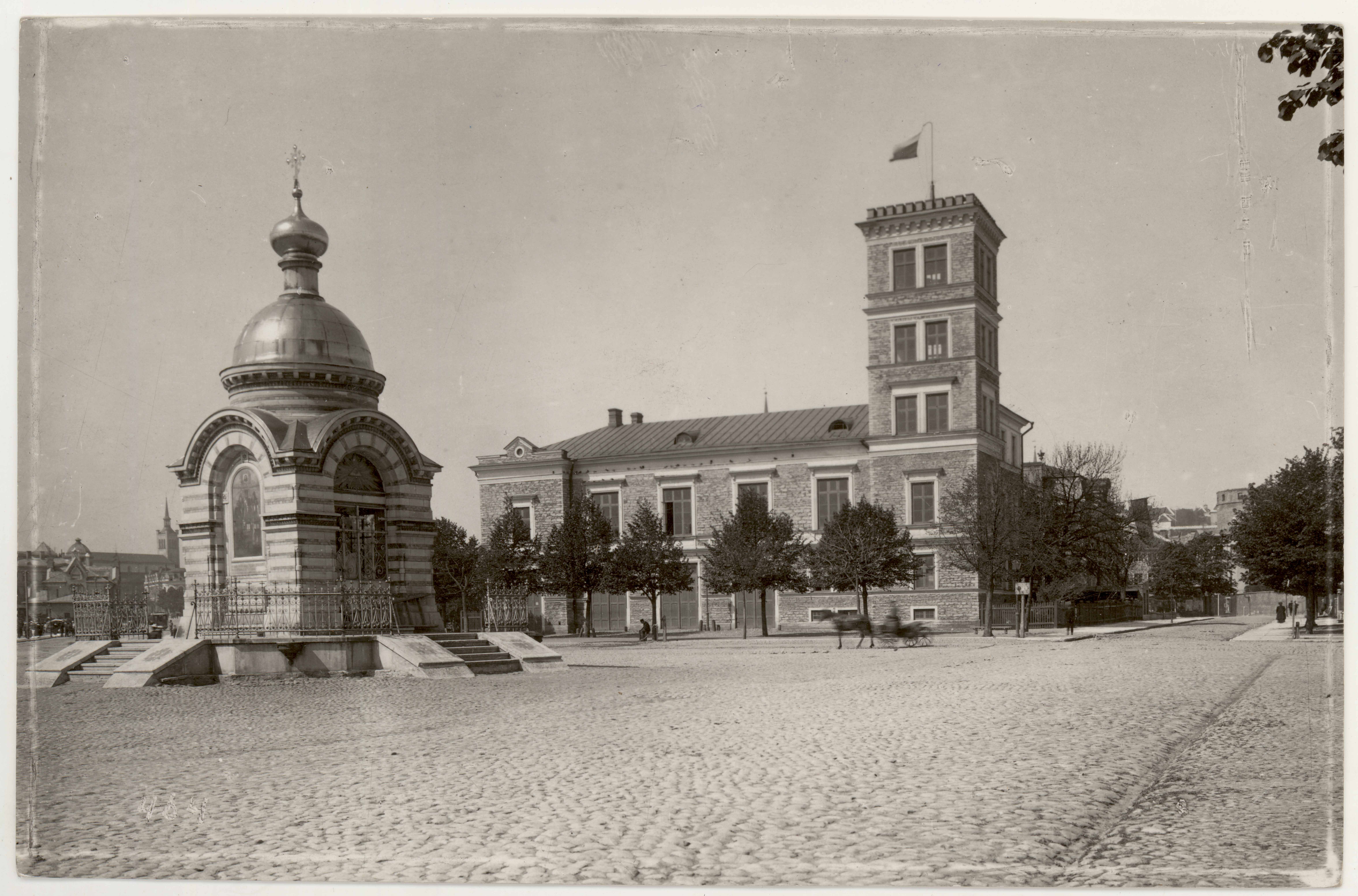 Tallinn. Vene turg, praegune Viru väljak. Vene kabel väljaku keskel. Tagaplaanil Tuletõrjemaja. Vaade idast
