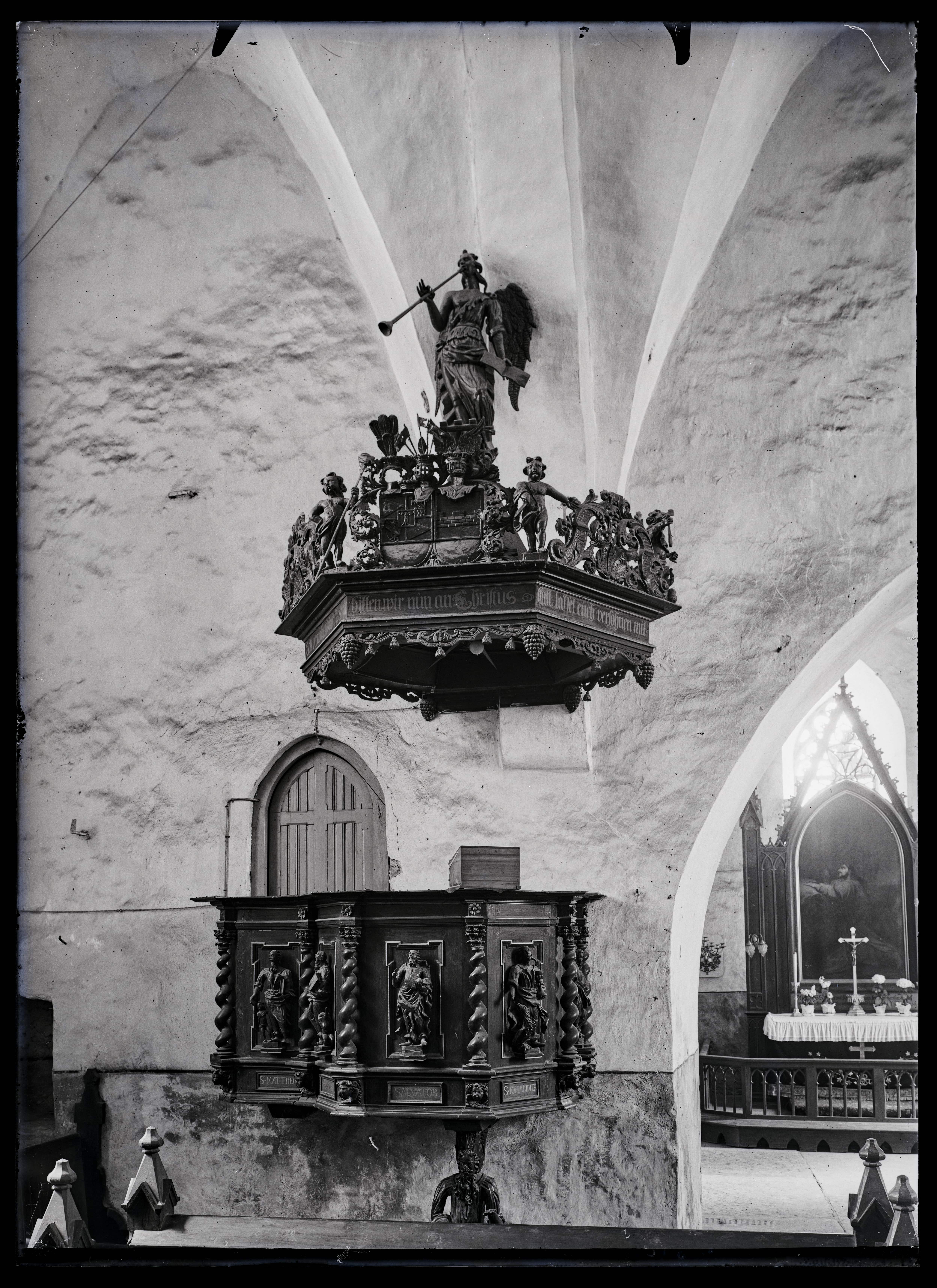 Haljala Püha Mauritiuse kirik. Kantsli (J. V. Rabe, 1730) eestvaade kesklöövist O suunas