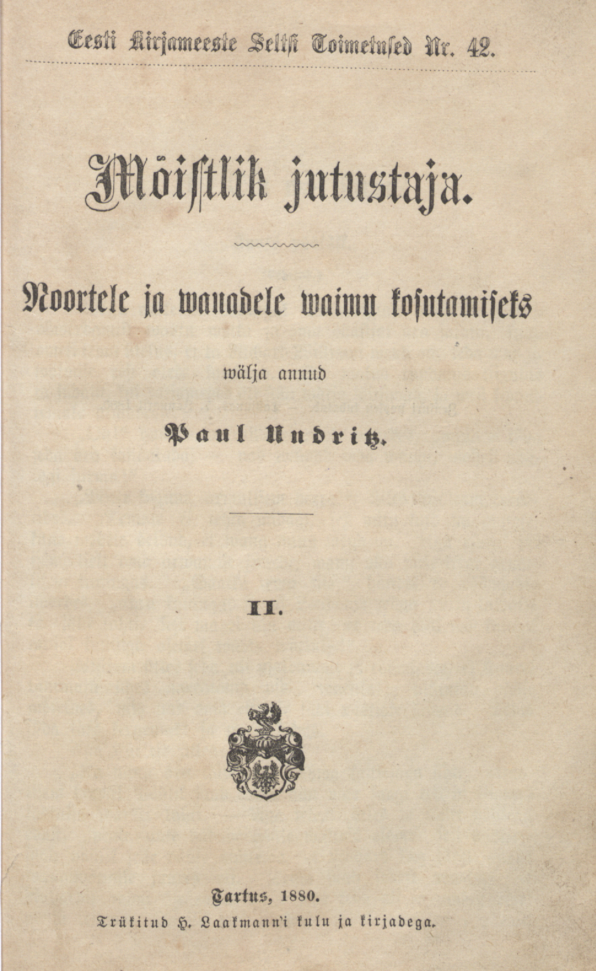 Mõistlik jutustaja. II. Noortele ja wanadele waimu kosutamiseks wälja annud Paul Undritz