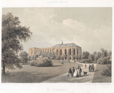 Eesti, Tartu, Toomemägi (Tartu), kohavaated, linnavaated, Tartu Ülikool, Tartu Ülikool. Raamatukogu, hooned, kõrgkoolihooned, raamatukoguhooned, toomkirikud, baltisaksa, kunst, graafika, litograafia, kunstialbumid, 1860-ndad, 19. saj.