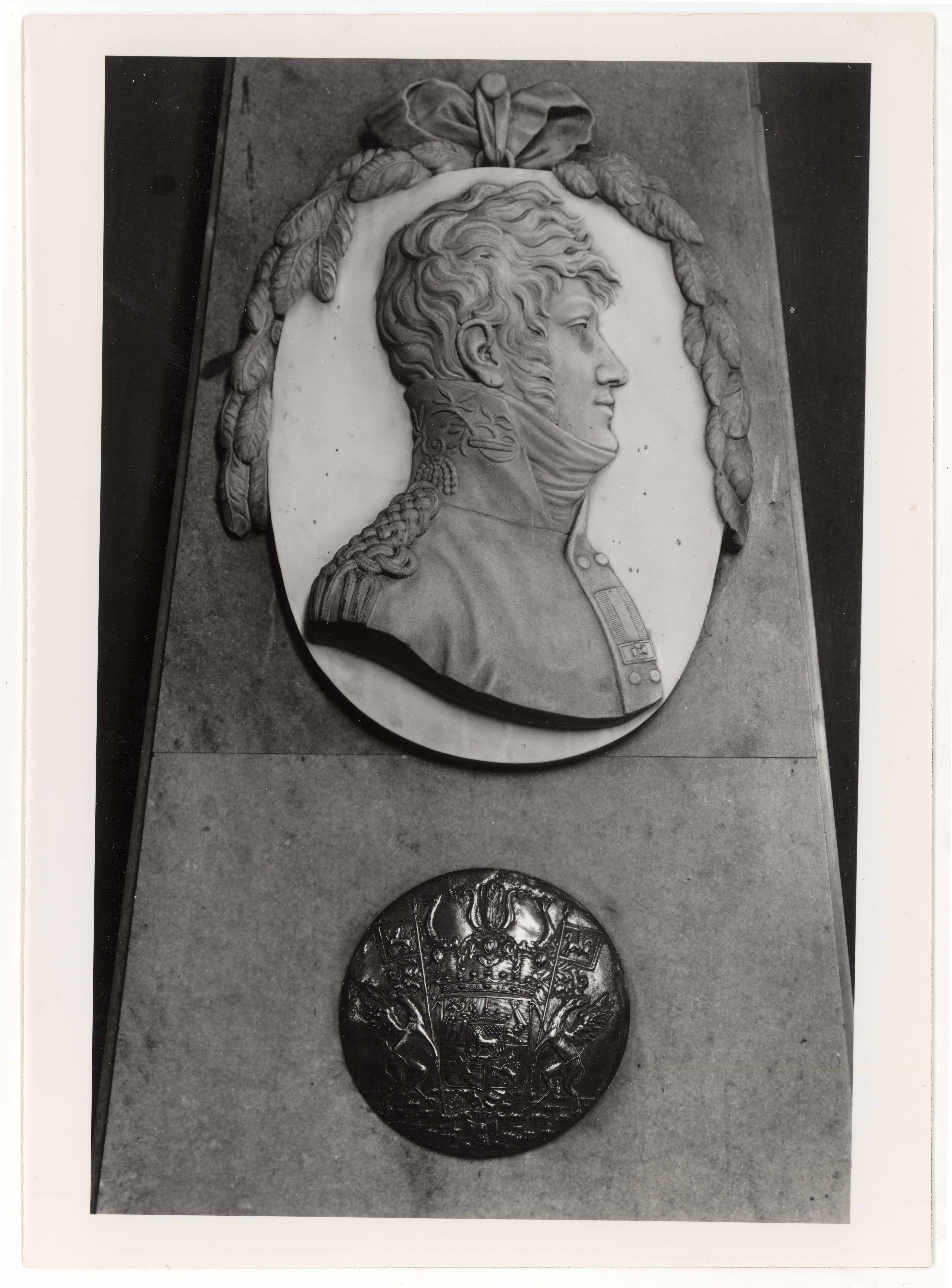 Tallinn. Toomkirik. Tiesenhauseni hauamonument. Obeliski keskosa profiilbüsti ja vapiga