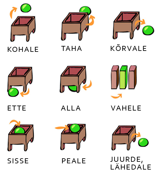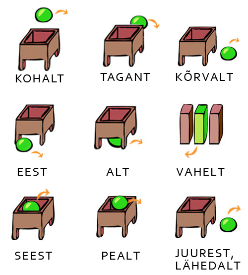 eesti keel, ruumi tähendusega prepositsioonid, ruumi tähendusega postpositsioonid, ruumi tähendusega verbid, õppevideo, BeSt programm, sisupakett