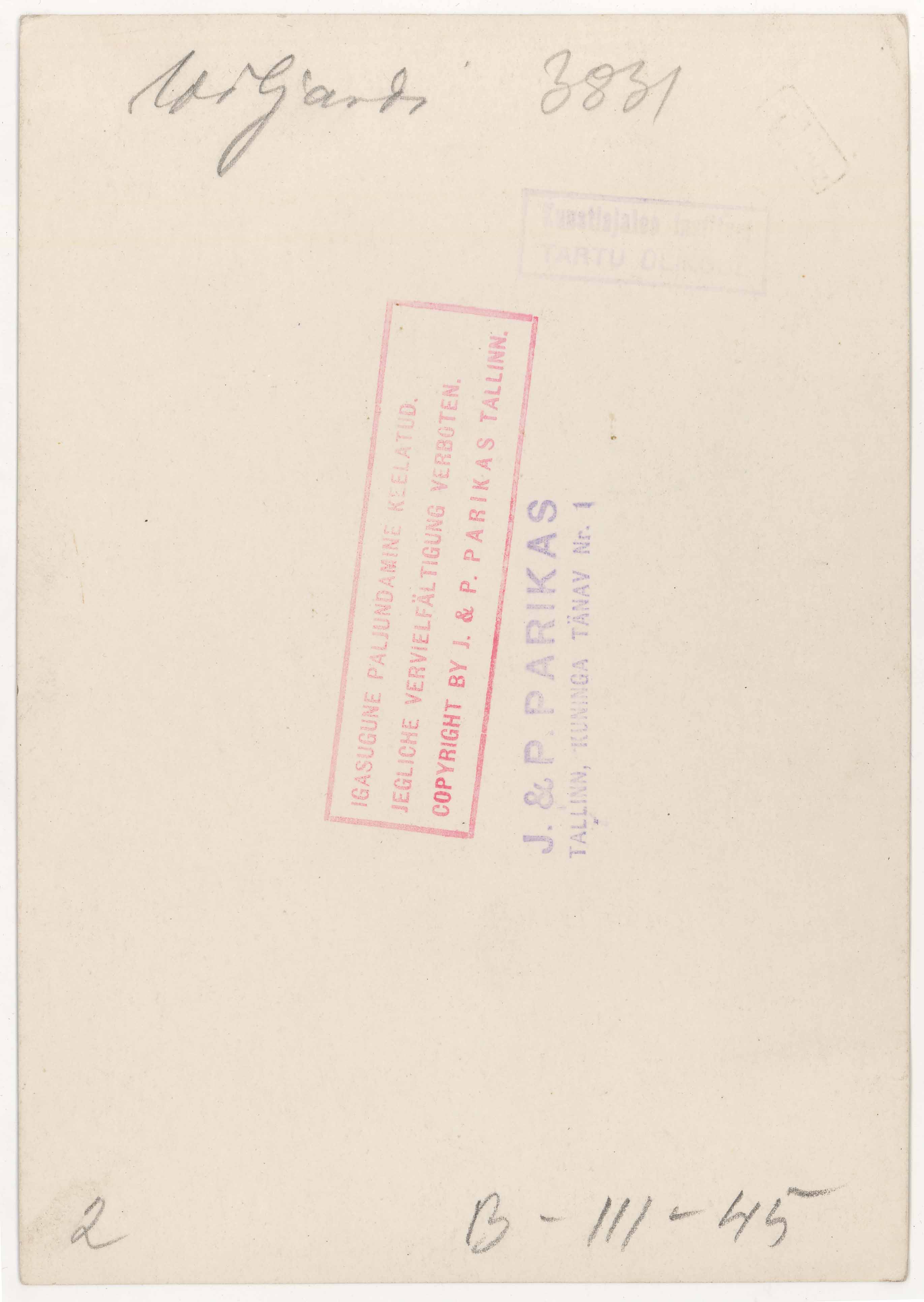 Tekst foto tagaküljel: Wiljandi 3831. Templid: Instituut; J&P