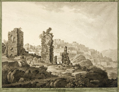 Lähis-Ida, Petlemm, kohavaated, linnavaated, baltisaksa, kunst, koopiad, joonistus, seepia (kunst), 19. saj., 1820-ndad
