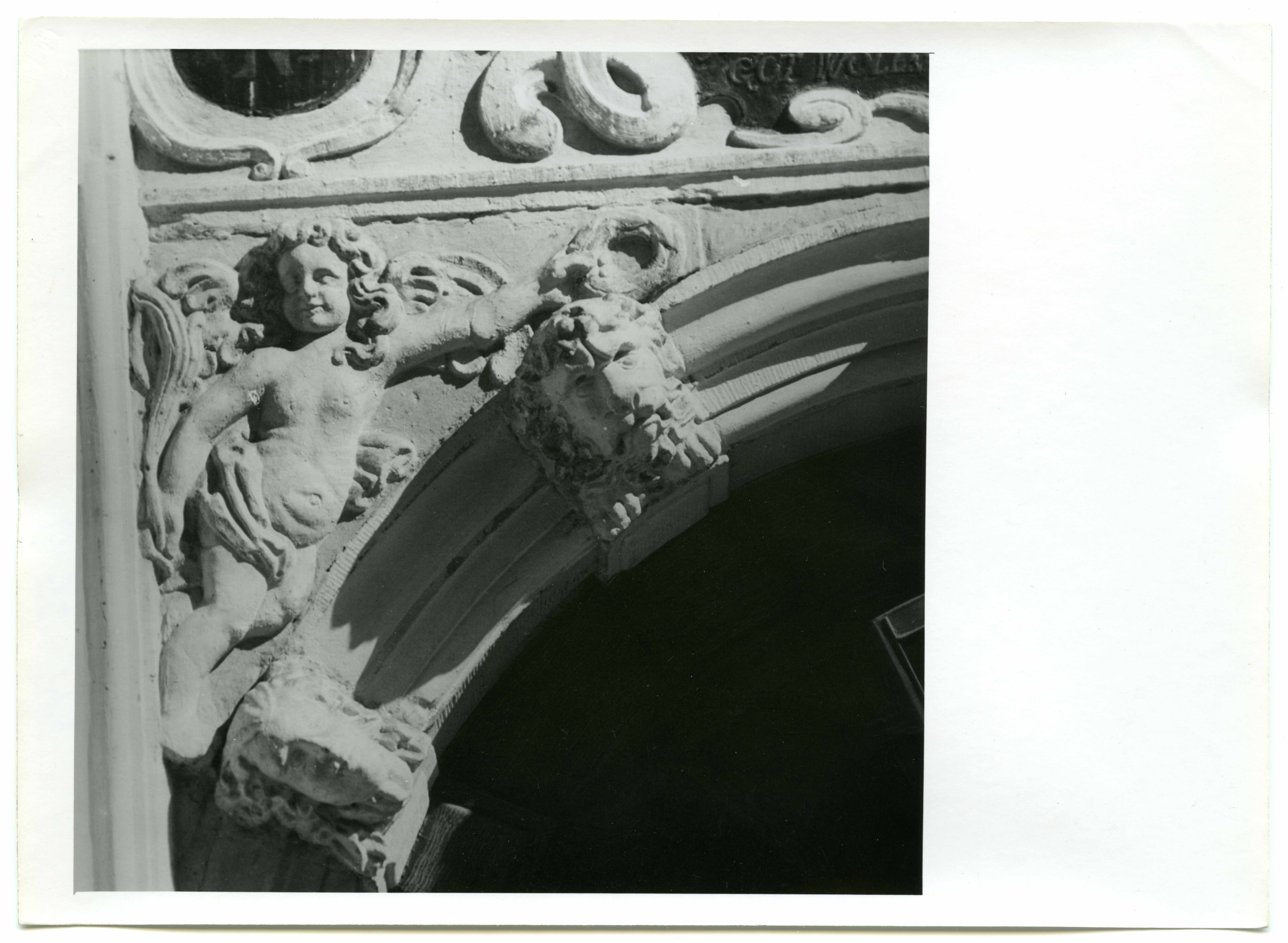 Narva. Rahu tn 7/19, L. Numensi maja portaali (J. Preuss /?/, 1652) detail: ingli kuju vasakpoolses viklis