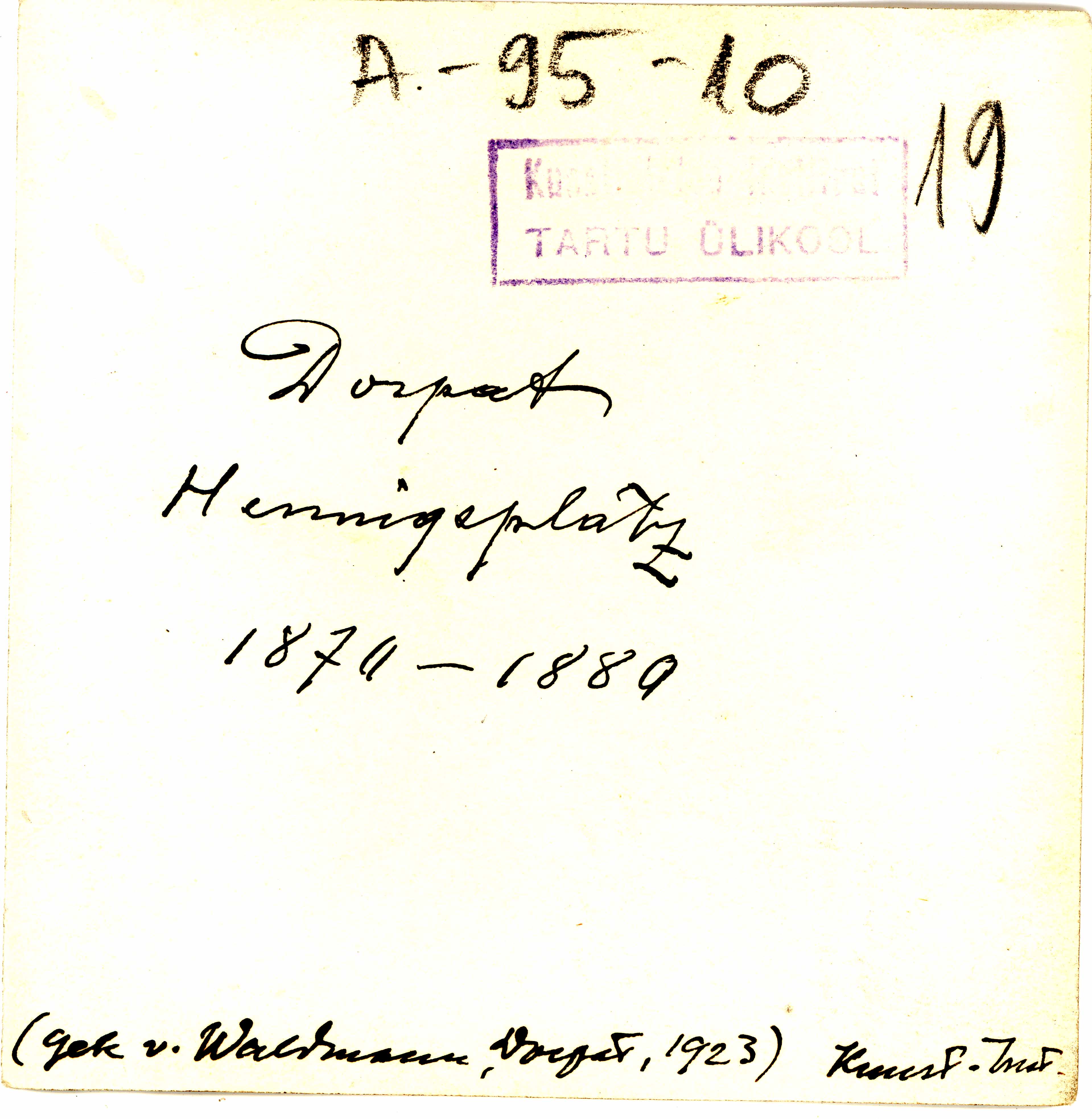 Tekst foto tagaküljel: Dorpat Henningsplatz. 1870-1880. (gek v Waldmann, Dorpat, 1923) Kunst. Inst. Tempel: Instituut