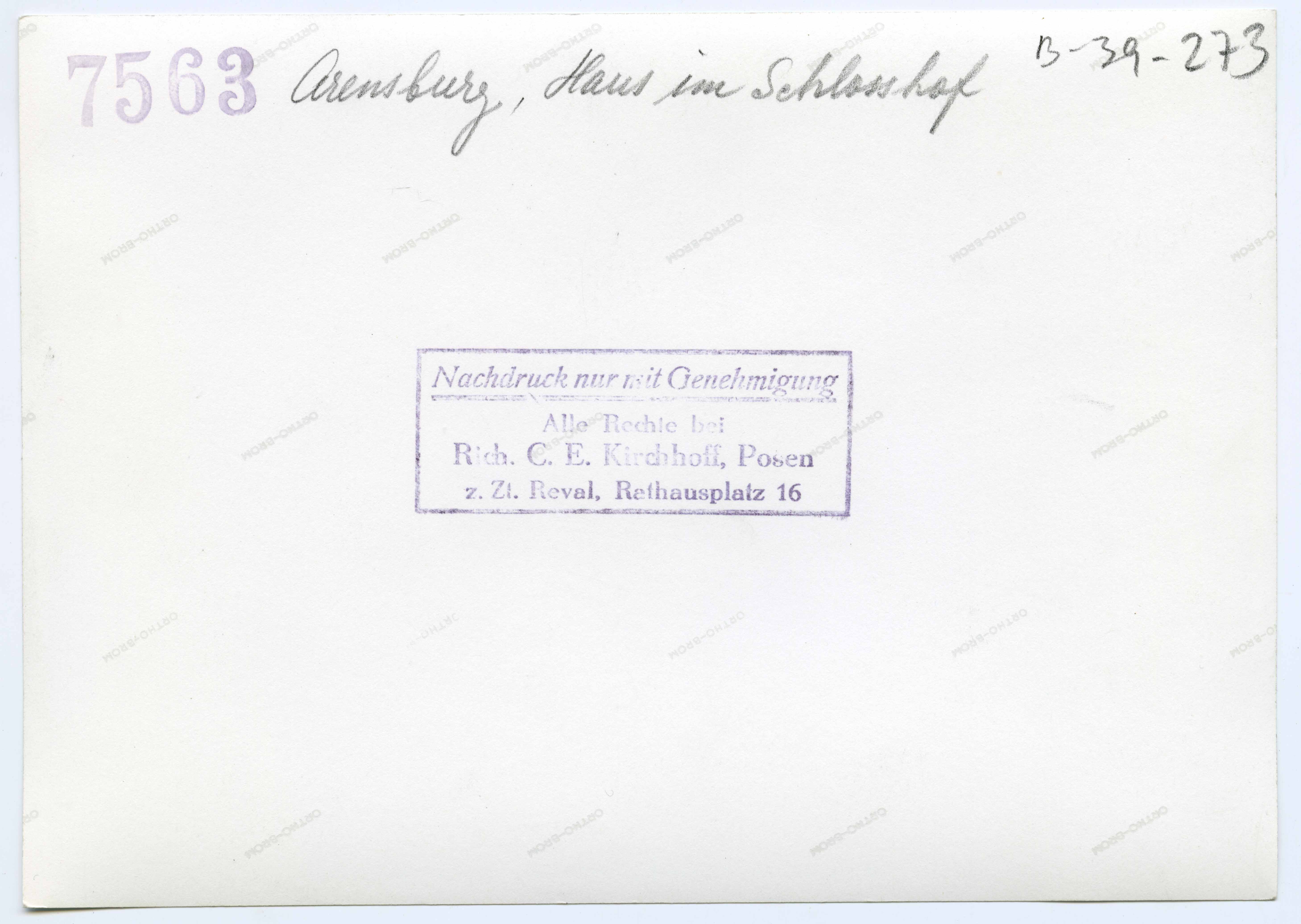 Tekst foto tagaküljel: Arensburg, Haus im Schlosshof. Tempel: Kirchhoff, 7563