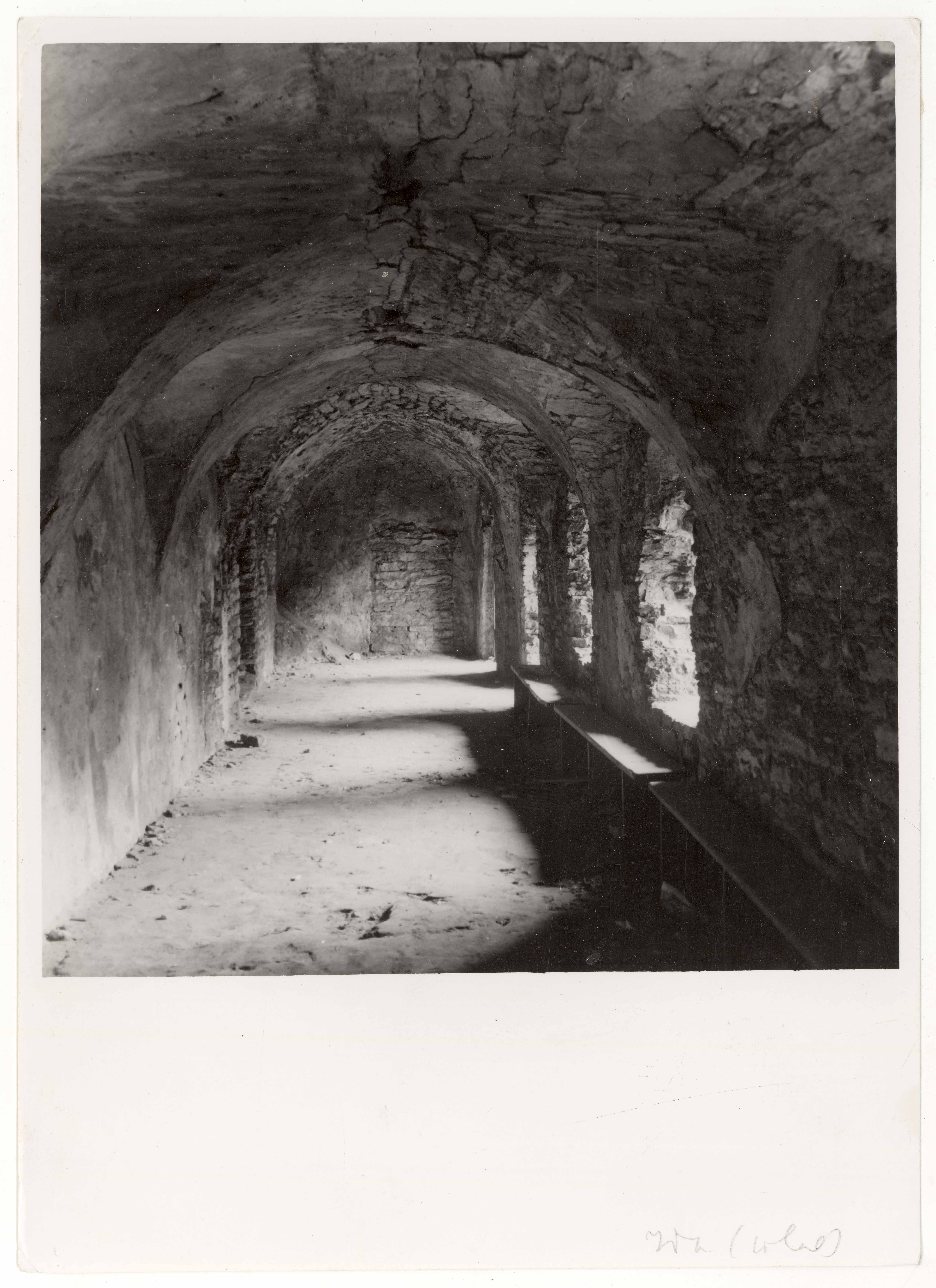 Tallinn. All-linn. Dominiiklaste kloostri idaristikäigu teise korruse vaade lõunasse. Vasakul uks munkade dormitooriumi ja tagaplaanil kinnimüüritud uks kirikusse